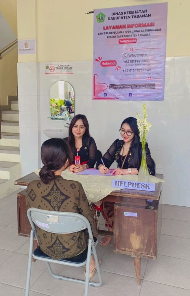 atau mengunjungi Helpdesk Seleksi CASN 2024 Kabupaten Tabanan yang bertempat di Kantor Dinas Kesehatan Tabanan